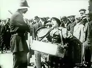 چارلی در کنار زمین مسابقه اتومبیلرانی با چند پلیس درگیر میشود. از آنطرف، یک دختر میخواهد هات داگهایش را بفروشد، اما نمیتواند و همه به او زور میگویند. چارلی میآید و از دختر دفاع میکند اما خودش خوراکیهای او را میدزدد. دختر میرود و پلیس میآورد و چارلی با پلیسها درگیر میشود و آنها را نقش زمین میکند. اما وقتی مظلومیت دختر را میبیند، به او کمک میکند.