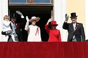در اسلو راهپیمایی کودکان در باغ قصر سلطنتی اسلو به پایان میرسد و اعضای خانواده سلطنتی از بالکن برای کودکان دست تکان میدهند.