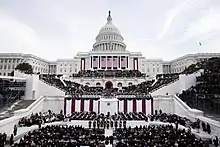 رئیسجمهور منتخب آمریکا بعد از ادای سوگند رسماً رئیسجمهور کشور میشود و بدین صورت آخرین مرحله انتقال قدرت انجام میگردد:[2]