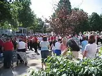 ![]() The gravestones at آرامستان ملی آرلینگتون are decorated by U.S. flags on Memorial Day weekend in 2008. | |