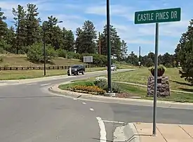 ![]() Looking uphill from the intersection of Happy Canyon Road and Castle Pines Drive. | |