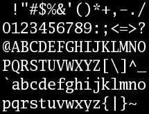 در جدول زیر کارکترها و شماره مربوط به آنها در کد اسکی (البته قسمت اول) آن آمده است.