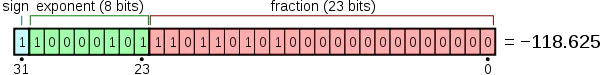 در این روش ۳۲ بیت در اختیار داریم که از چپ یک بیت(بیت شماره ۳۱) برای علامت(s) است که اگر عدد مثبت باشد برابر ۰ و اگر عدد منفی باشد برابر ۱ خواهد بود. پس از آن ۸ بیت(از شماره ۲۳ تا ۳۰) برای توان(e) قرار داده شده. سایر بیتها (از شماره ۰ تا ۲۲) برای قسمت اعشار پایه(m) در نظر گرفته شدهاست. از فرمول زیر برای تبدیل نمایش از این قالب به مبنای ده و برعکس آن استفاده میشود.