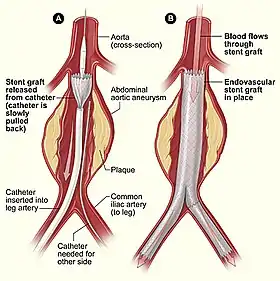 ![]() تعمیر آنوریسم اندوواسکولار -نمونهای از روش کم تحاجمی | |
