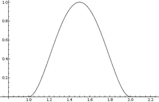 جسم زیر که سطح مقطع آن بر بازهٔ [۱،۲] تعریف شدهاست را درنظر بگیرید: