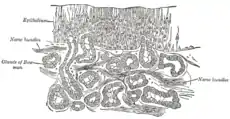برشی از غشاء مخاطی بویایی با روپوشه بویایی در بالا.