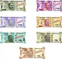 ![]() اسکناسهایی که هماکنون در هند در حال گردش است. | |