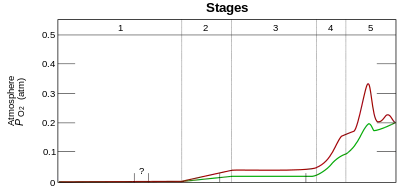 پالئوسولها، دانههای دیتریتی و لایههای بستر سرخ، همه گواه وجود اکسیژن در سطحی پایین هستند. پالئوسولهای قدیمیتر از ۲٫۴ بیلیون سال دارای غلظت آهن کمتری هستند که نشاندهندهٔ کمبود اکسیژن است.[1]دانههای دتریتوس مسنتر از ۲٫۴ بیلیون نیز دارای مادهای هستند که تنها در شرایط اکسیژن کم وجود دارند.[2]