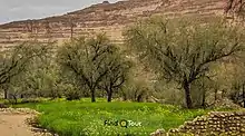 نخلستانی با درختان بلند و سبز که از طریق چند چشمه به نامهای انجیری، هوخشو و کویردان آبیاری میشوند هم از دیگر دیدنیهای رویدر میباشند. در سالهای گذشته این نخلستان محل زندگی مردم رویدر بوده و هنوز آثاری از خانههای قدیمیشان در آن باقی مانده است.