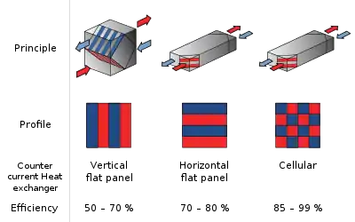در مبحث گرمایش، تهویه و سیستمهای تهویه مطبوع (به اختصار اچویایسی)، رکوپراتورها به طور گسترده برای بازیابی حرارت از هوای خروجی و برگرداندن هوا به جو استفاده میشود. این دستگاهها به طور کلی شامل مجموعهای از ورقهای موازی از جنس آلومینیوم، پلاستیک، فولاد ضد زنگ و الیاف مصنوعی هستند که به صورت یک در میان هر جفت از آنها در هم ادغام شده و تشکیل کانالهایی با زوایای معینی نسبت به هم میدهند که از درون آنها هوای ورودی و خروجی جریان مییابد. با شارش هوا، حرارت از هوا به صفحات یا بالعکس منتقل میشود.