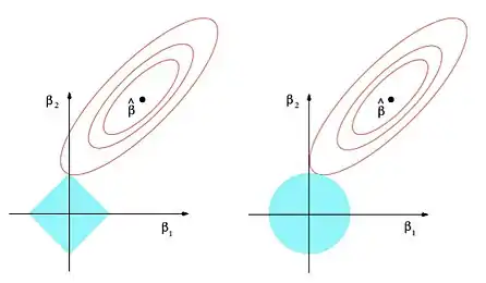 این روش تنظیم مدل که به روش لَسو[persian-alpha 5] نیز شهرت دارد باعث میشود که بسیاری از پارامترهای مدل نهائی صفر شوند و مدل به اصلاح خلوت[persian-alpha 6] شود.[34]