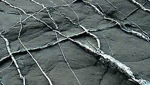 رگههای سفید در سنگ سیاه