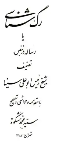 - حسین بن عبدالله ابن سینا. رگ شناسی. به کوشش سیدمحمد مشکوه. انجمن آثار و مفاخر فرهنگی. شابک ۹۶۴-۷۸۷۴-۵۶-۱. از پارامتر ناشناخته