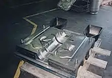 قالبها حداقل از ۲ قسمت تشکیل میشوند – یا ۲ قسمت با مرکزهایی دیگر برای تولید قطعاتی پیچیدهتر. مرکزها معمولاً از جنس آهن یا استیل هستند ولی گاهی از ماسهٔ قابل کاربرد هم استفاده میشود. در این مرحله مرکزها جاگزاری میشوند و دو نیمه در هم چفت میشوند..