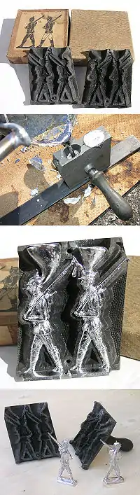 از قالب لوم برای تولید اشیا متقارن بزرگ مانند توپ و ناقوس کلیسا استفاده شده است. لوم مخلوطی از رس و ماسه با کاه یا کود است. مدلی تولید شده در ماده ای شکننده (کیمیز) شکل می گیرد. قالب با پوشاندن آن در لوم در اطراف این ماده شیمیایی تشکیل می شود. سپس این ماده را پخته (شلیک می کنند) و مواد شیمیایی را از بین می برند. سپس قالب را به صورت قائم در گودالی مقابل کوره می گذارند تا فلز ریخته شود. پس از آن قالب شکسته می شود. از این رو فقط یکبار می توان از قالب ها استفاده کرد ، به طوری که سایر روش ها برای بیشتر اهداف ترجیح داده می شوند.