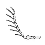 3. Flagellum (تاژک): که از پدیکل تا انتهای شاخک را شامل میشود.