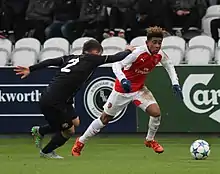 ![]() ریس نلسون (راست) هنگام بازی برابر دینامو زاگرب | |||