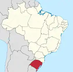 ![]() Location of State of Rio Grande do Sul in Brazil | |