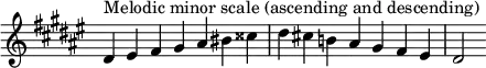 - در صورتی که درجات ششم و هفتم در حالت بالا رونده نیم پرده کروماتیک به بالا تغییر کند و در حالت پایین رونده به حالت اصلی خود برگردد، ر دیز مینور نغمگی (یا ر دیز مینور ملودیک) است.