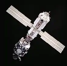 ![]() زاریا، جلویی به همراه صفحات خورشیدی غوطه ور در فضا |
