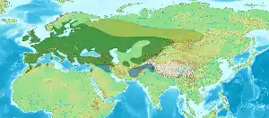 | گسترهٔ زاغچه با رنگ سبز، تابستانیها در محدوده سبز کم رنگ بخش آبی مربوط به بازدیدکنندگان زمستانی | |