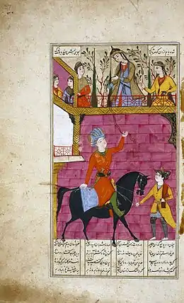 | خرامد مگر پهلوان با کمند | به نزدیک دیوار کاخ بلند | |