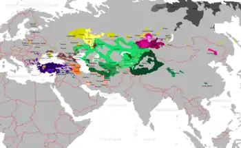 ![]() گستردگی زبانهای ترکی در نقشه جهان | |