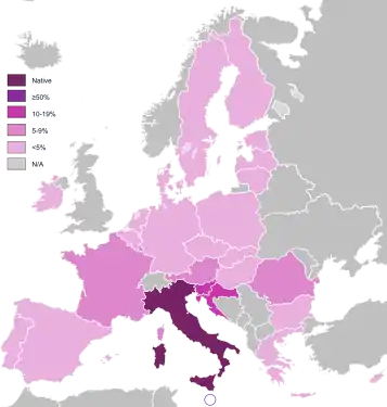 | ایتالیایی | ۱۵٪ | ۳٪ | ۱۸٪ |