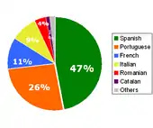 - اسپانیایی (کشورهای اسپانیاییزبان) ۴۹٪ (۲)