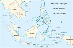 در زبانشناسی، زبانهای فیلیپینی پیشنهادی توسط رابرت بلاست مربوط به سال ۱۹۹۱ است که همه زبانهای فیلیپین و سولاوسی شمالی—به جز ساما-باجاو (زبانهای «کولیان دریایی») و تعداد کمی از زبانهای پالاوان—یک زیرخانواده از زبانهای آسترونزیایی را تشکیل میدهند. اگرچه فیلیپین نزدیک مرکز گسترش آسترونزیایی از فرمز واقع شدهاست، گوناگونی زبانشناختی کمی بین حدود ۱۵۰ زبان فیلیپینی وجود دارد، که نشان میدهد گوناگونی قبلی با گسترش نیای زبانهای فیلیپینی امروزی از میان رفتهاست (ادلار & هیملمان ۲۰۰۵).[1] زبانهای فیلیپینی با چندین زبان با حفظ واکه بیرنگ و همصدایی d–r نیاآسترونزیایی، که در گروهبندی سوندا-سولاوسی از دست رفتهاست، کهنترین شاخه غیرفرمزی خانواده زبانی آسترونزیایی را تشکیل میدهند.