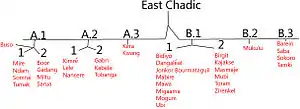 زبانهای چادی شرقی ، حدود ۲۵ تا ۲۶ زبان است که از ۶ گروه و در ۲ شاخه اصلی تشکیل شده است[1][3].
