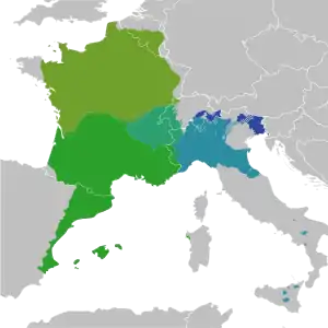 - اکسیتان که دارای گویشهایی مانند پرونسی و گاسکون است.