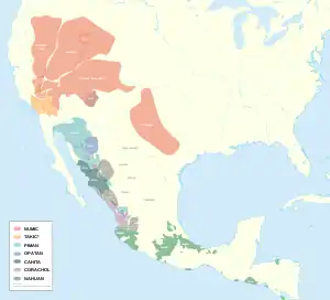 ![]() پراکندگی زبانهای یوتو-آزتک | |