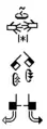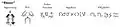 مقایسه سیستمهای نوشتاری.فرم استوکویی و فرم دستنویس آن در سمت چپ، فرم اشاره نگاری در مرکز و فرم ساین فونت و فرم دستنویس آن در سمت راست.