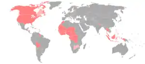 | منطقه | آمریکای شمالی، آفریقای غربی، مرکز آفریقا |