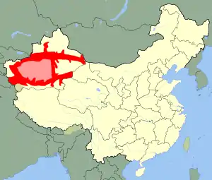 ![]() محدودهٔ جغرافیایی اویغورها در چین | |