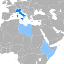 به دلیل نفوذ شدید ایتالیا در دوران استعمار، ایتالیایی هنوز در برخی از مستعمرات پیشین درک میشود.[8] ایتالیایی از زمان استعمار در لیبی زبان اصلی آنجا بود اما استفاده از آن تحت حاکمیت معمر قذافی، که جمعیت ایتالیاییهای لیبی را اخراج کرد و عربی را به عنوان تنها زبان رسمی کشور قرار داد، بسیار کاهش یافت.[39] چند صد مهاجر ایتالیایی در دهه ۲۰۰۰ به لیبی بازگشتند. امروز ایتالیایی پرسخنگوترین زبان دوم در کشور است و به عنوان یک زبان تجاری و گاهی به عنوان زبان میانجی میان لیبیاییها و خارجیها عمل میکند.[40]
