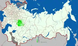 ![]() Geographic distribution of Bashkir language in the Russian Empire according to 1897 census | |