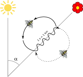 دانشمندان دریافتند که زنبوران دیگر از این اطلاعات حین رقص استفاده میکنند تا محل منبع جدید غذایی را پیدا کنند. زنبور پیشاهنگ جهت منبع غذایی را با نشان دادن زاویه بین منبع غذایی و کندو بر مبنای موقعیت خورشید به زنبوران دیگر توضیح میدهند. زاویه بین کندو و منبع غذایی همان زاویهای است که بخش وسط شکل θ با خط عمود در شان کندو میسازد.