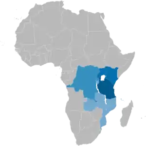 | زبان بومی در | تانزانیا، جمهوری دموکراتیک کنگو، جزایر باجونی (بخشهایی از سومالی)، سودان جنوبی، موزامبیک (بیشتر موانی)، بوروندی، رواندا، اوگاندا، کنیا،[1] اتحاد قمر، مایوت، زامبیا، مالاوی، و ماداگاسکار |