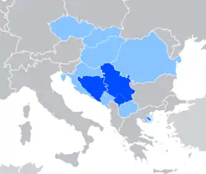 | زبان بومی در | Serbia, Montenegro, Croatia, Bosnia and Herzegovina, and neighboring regions |