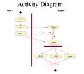 - نمودار فعالیت (Activity Diagram): نمودار فعالیت برای توصیف قدم به قدم گردش کار تجاری و عملیاتی مؤلفههای سیستم استفاده میشود. نمودار فعالیت توصیفکننده گردش کنترل در سرتاسر سیستم است.