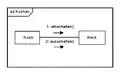 - دید برهمکنش (Interaction View): دید برهم کنش توالی پیامهای مبادله شونده بین بخشهای یک سیستم را توصیف میکند. این دید نمایی کل گرا از رفتارهای درون یک سیستم را نمایش میدهد. این دید از دو نمودار برای نمایش استفاده میکند که هریک روی دیدگاه خاصی تمرکز یافتهاند: نمودار ارتباطات و نمودار توالی