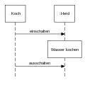 - نمودار توالی (Sequence Diagram): نشان میدهد که اشیاء چگونه با یکدیگر در قالب پیامهایی متوالی ارتباط بر قرار میکنند و همچنین نمایشگر طول عمر اشیاء نسبت به این پیامها است.