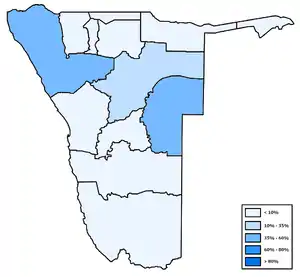 ![]() پراکندگی گویشوران هررو در نامیبیا. | |