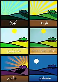 | صبح | ګهیځ | gahíź | /ɡa.hiˈd͡z/ |
