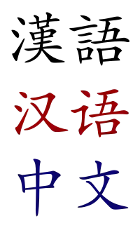 | 汉语/漢語, 华语/華語 یا 中文 Hànyǔ, Huáyǔ, یا Zhōngwén | |