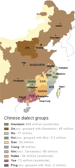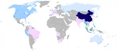 ![]() نقشهٔ زبانهای چینی در جهان