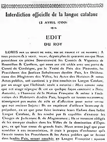 - "L'interdiction de la langue catalane en Roussillon par Louis XIV" (PDF). "CRDP, Académie de Montpellier. Archived from the original (PDF) on 14 December 2010.