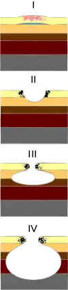 مرحله دوم. قسمتهایی از سطحِ پوست از بین میرود، چیزی شبیه تاول.